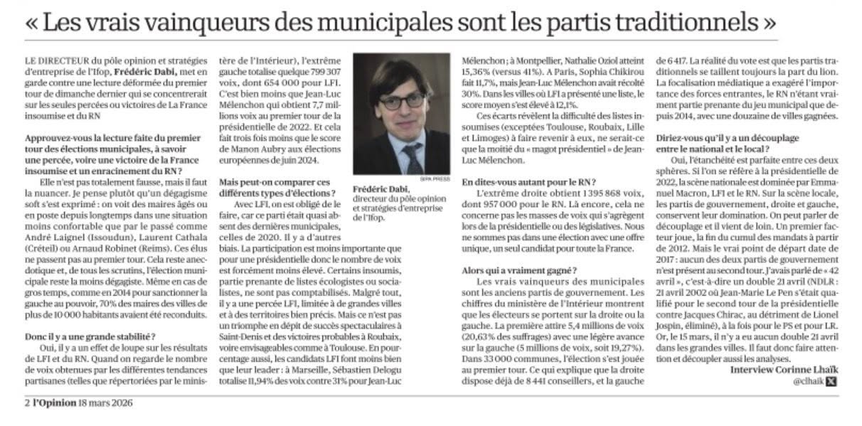 🔜 Voir également ⤵️ l’analyse de Frédéric Dabi dans le journal « L’Opinion » du jour.
