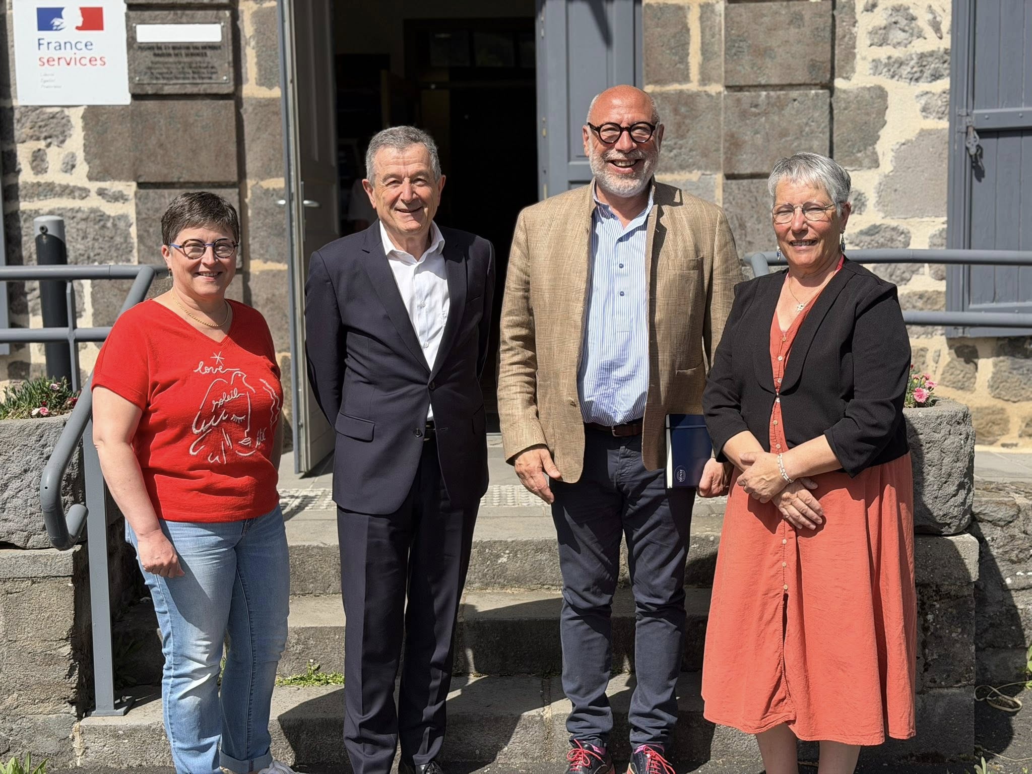 📍Bernard Andrieu à Saint-Martin-Valmeroux entouré de quelques conseillères : sujets de l’eau, des finances et du logement, mise en œuvre du programme…