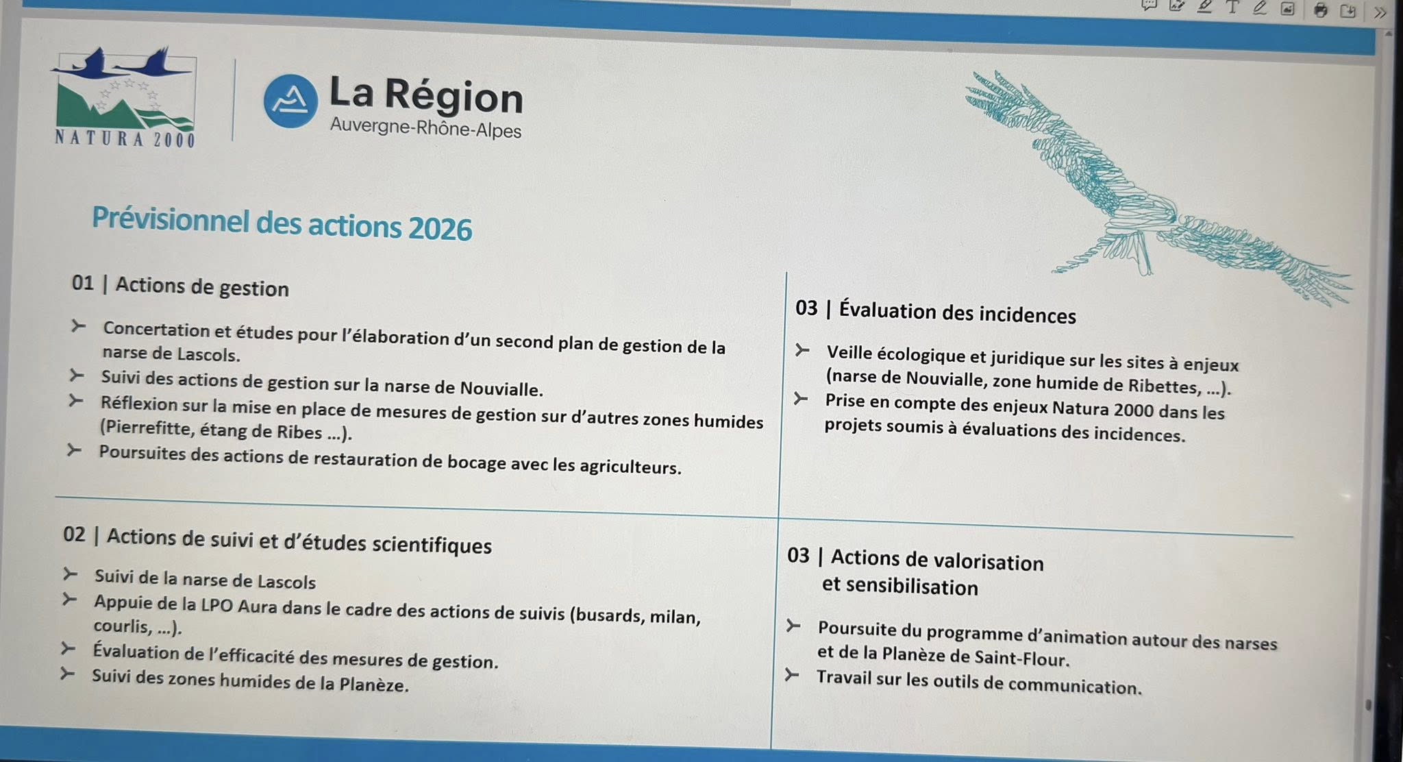 – La présentation du bilan des actions menées en 2025, par exemple sur la narse de Pierrefitte à Talizat,