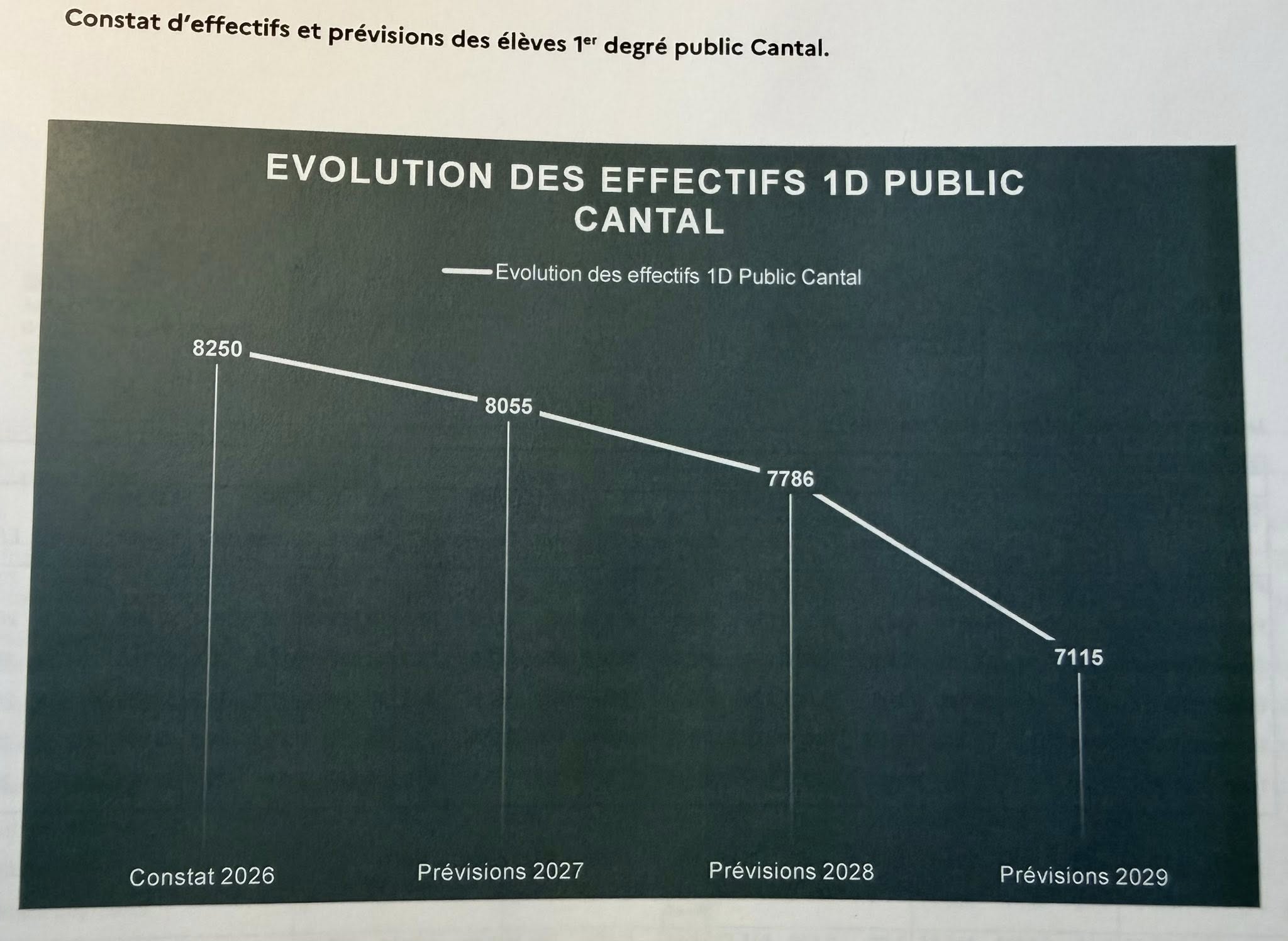 ❌ Il n’en demeure pas moins que ces suppressions de postes et les baisses d’effectifs que connaît le Cantal en primaire : 8250 élèves constatés dans le public en 2026 et des prévisions de 7115 élèves en 2029, constituent un vrai traumatisme et une perspective négative pour tous.
